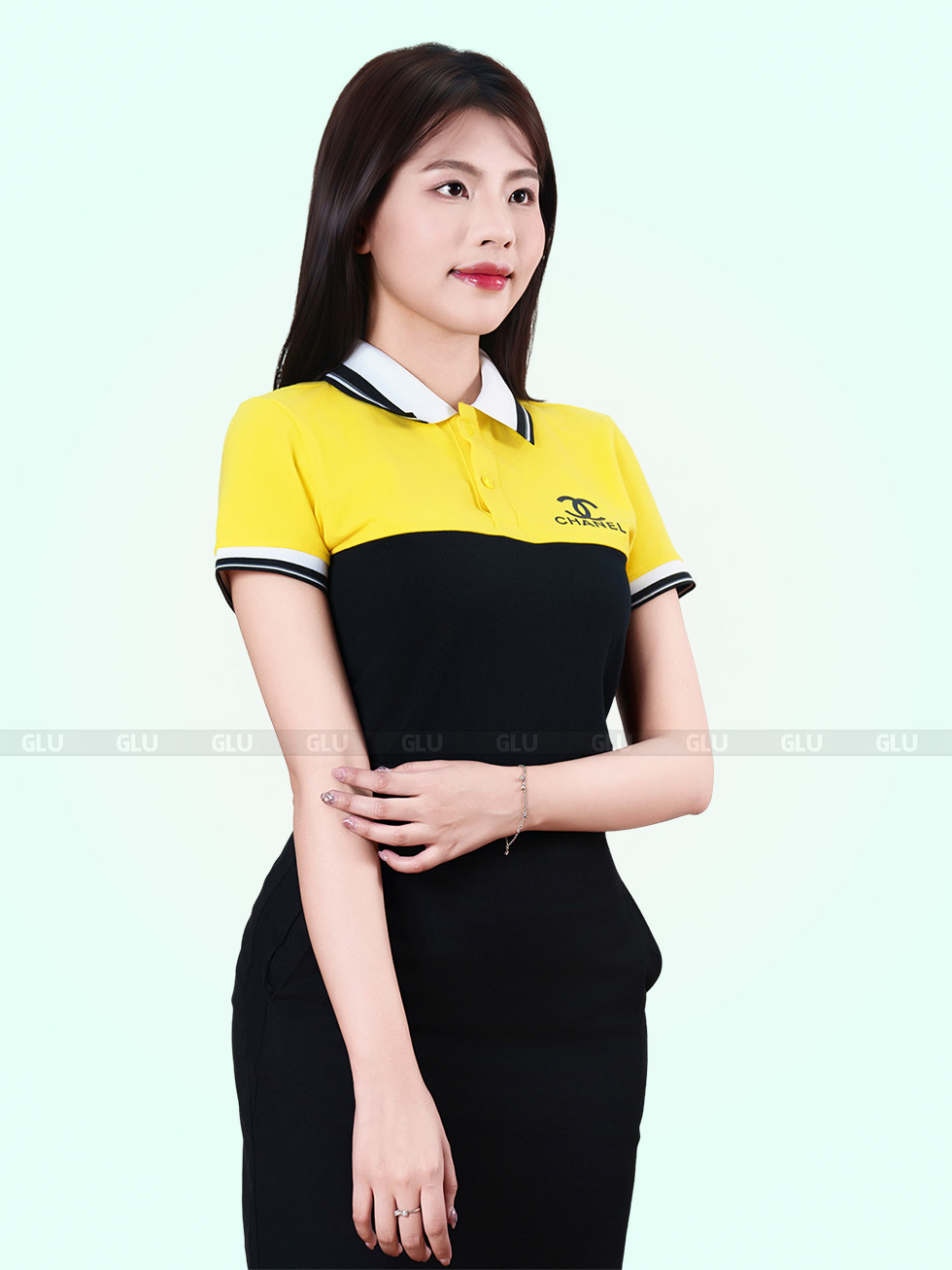Sự kết hợp giữa vàng nổi bật và đen cổ điển tạo nên hiệu ứng thị giác mạnh mẽ, vừa trẻ trung vừa chuyên nghiệp. Thiết kế cắt màu ngang thân tạo ranh giới rõ ràng, giúp tổng thể gọn gàng, hiện đại. Cổ áo dệt bo phối trắng – đen, tay áo viền đồng bộ giúp tông màu trở nên hài hòa mà vẫn giữ cá tính riêng. Form polo ôm nhẹ, dễ mặc, dễ phối đồ và ứng dụng được trong nhiều hoàn cảnh làm việc khác nhau.