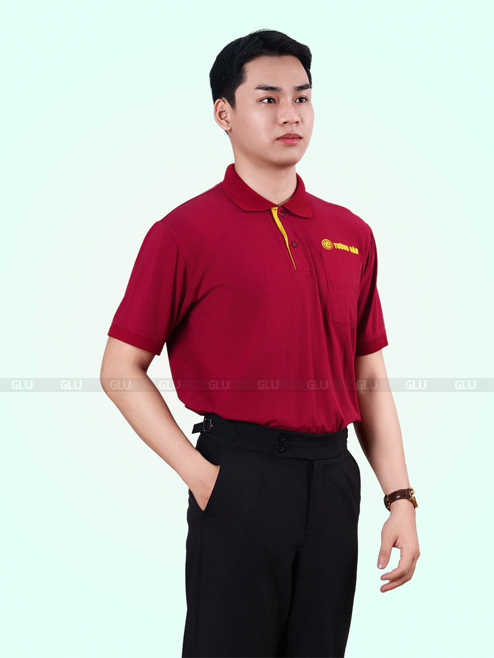 Gam đỏ đô đậm chất truyền thống, mang đến cảm giác tin cậy và dễ nhận diện từ xa. Cổ áo bo gọn phối đường viền vàng chạy dọc khuy áo, tạo điểm nhấn nhỏ nhưng hiệu quả, giúp thiết kế bớt đơn điệu mà vẫn giữ sự nghiêm túc. Phần ngực có túi tiện dụng, đặc biệt phù hợp với nhân viên kỹ thuật, bảo trì hay kho vận – những người thường xuyên cần thao tác linh hoạt.