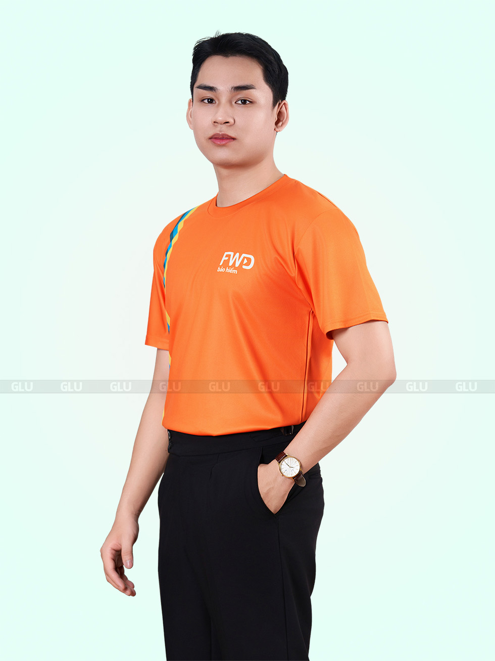 Chất liệu vải thun giúp áo giữ phom chuẩn, bề mặt có độ thoáng tốt và đàn hồi nhẹ, phù hợp cho cả hoạt động ngoài trời hay môi trường công sở năng động. Logo này được in pet sát ngực trái, tinh gọn và sắc nét trên nền cam, thể hiện sự chuyên nghiệp trong từng chi tiết nhỏ. Mẫu thiết kế được nhiều doanh nghiệp quan tâm khi tìm kiếm xưởng in áo thun đồng phục tại Mỹ Hào với yêu cầu cao về nhận diện và màu sắc nổi bật.